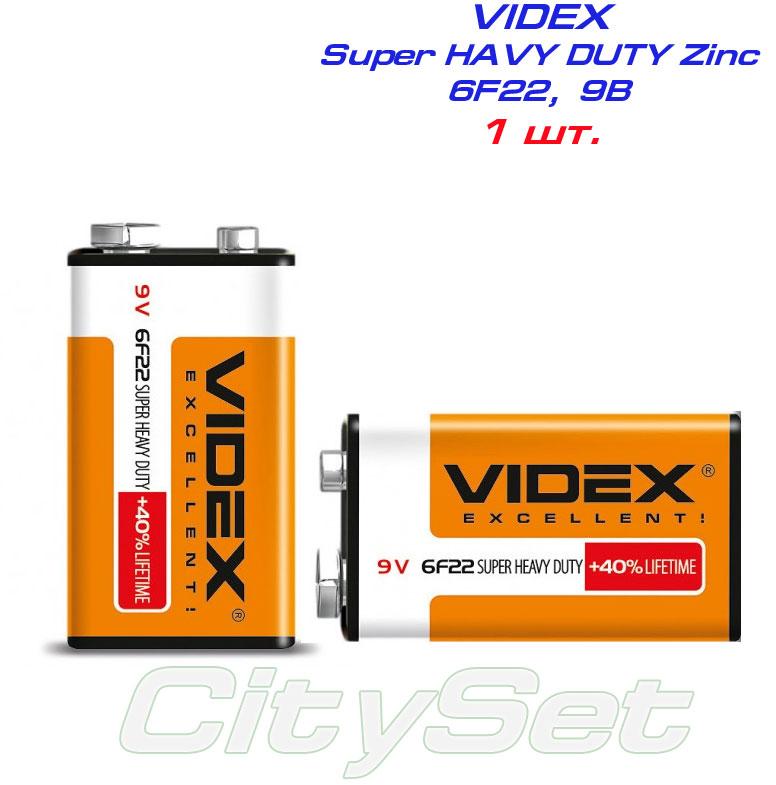 Батарейка VIDEX Super HEAVY DUTY, 9В, тип 6F22, "Крона", кількість: 1 шт.